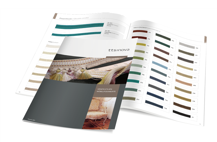 Unser aktueller Möbelposamenten Katalog Übersicht über alle verfügbaren Farben und Ausführungen. Für eine zuverlässige Farbwahl offerieren wir Ihnen gerne unseren Musterkollektions-Ordner.