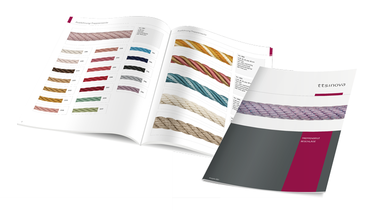 Neu und übersichtlich dargestellt, unser Treppenseil- und Beschlägekatalog Im Katalog finden Sie sämtliche Ausführungen von Treppenseilen, Farbenübersichten, passende Abschlüsse und Zubehör wie Beschläge und...