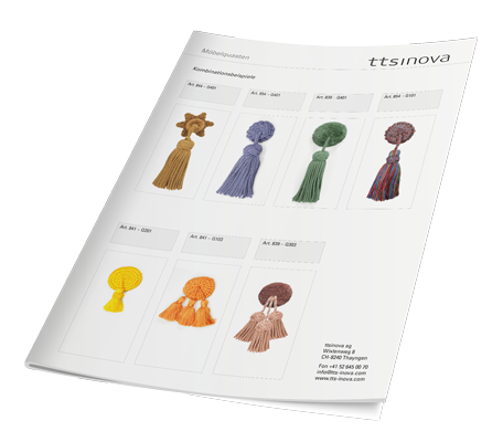 Sie sind auf der Suche nach Rosetten und Möbelquasten? Gerne fertigen wir individuell zusammengestellte Möbelquasten an. Fordern Sie hierfür unser neues Produkteblatt...