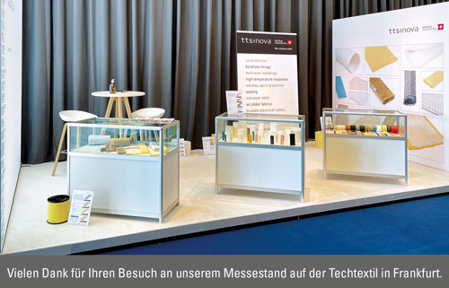 VIELEN DANK für Ihren Besuch auf unserem Messestand während der diesjährigen Techtextil in Frankfurt. Dank der vielen Besucher an unserem Messestand konnten wir interessante Gespräche führen und freuen uns sehr über die positive Resonanz. Hier war es uns möglich, die Vielfalt unserer Produkte anschaulich zu präsentieren und ausführlich zu informieren. Für weitere Informationen kontaktieren Sie uns...
